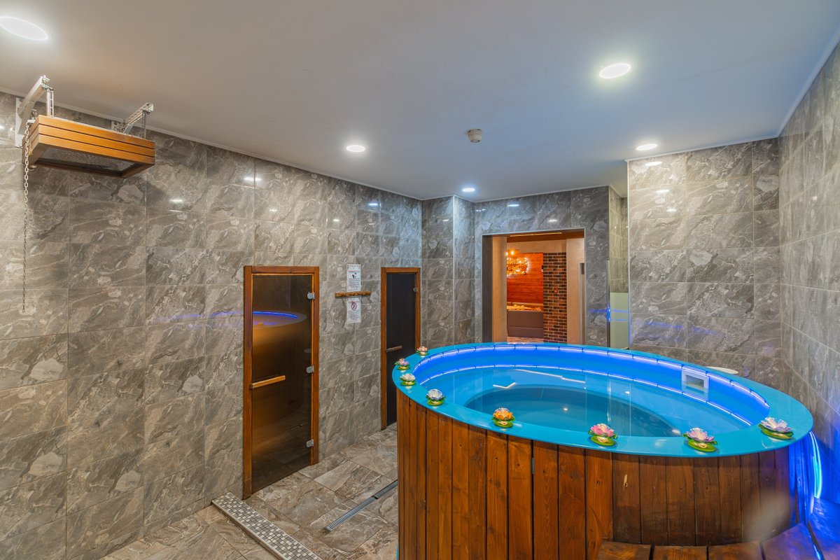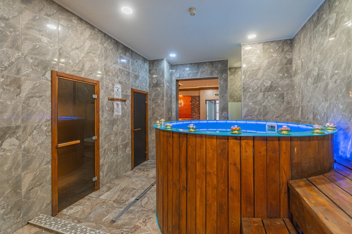 Просторная баня с множеством комнат. Есть парилка, хаммам и бассейн. Всё очень чисто и уютно, установлен телевизор. Обслуживание на высоте. Особенно впечатлил хаммам — просто класс!